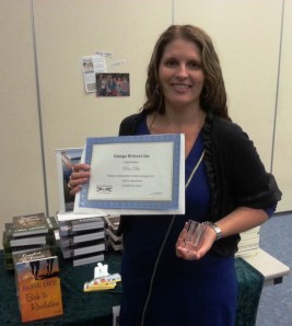 At Omega Writer’s Dinner with my Bookseller’s Choice Award.